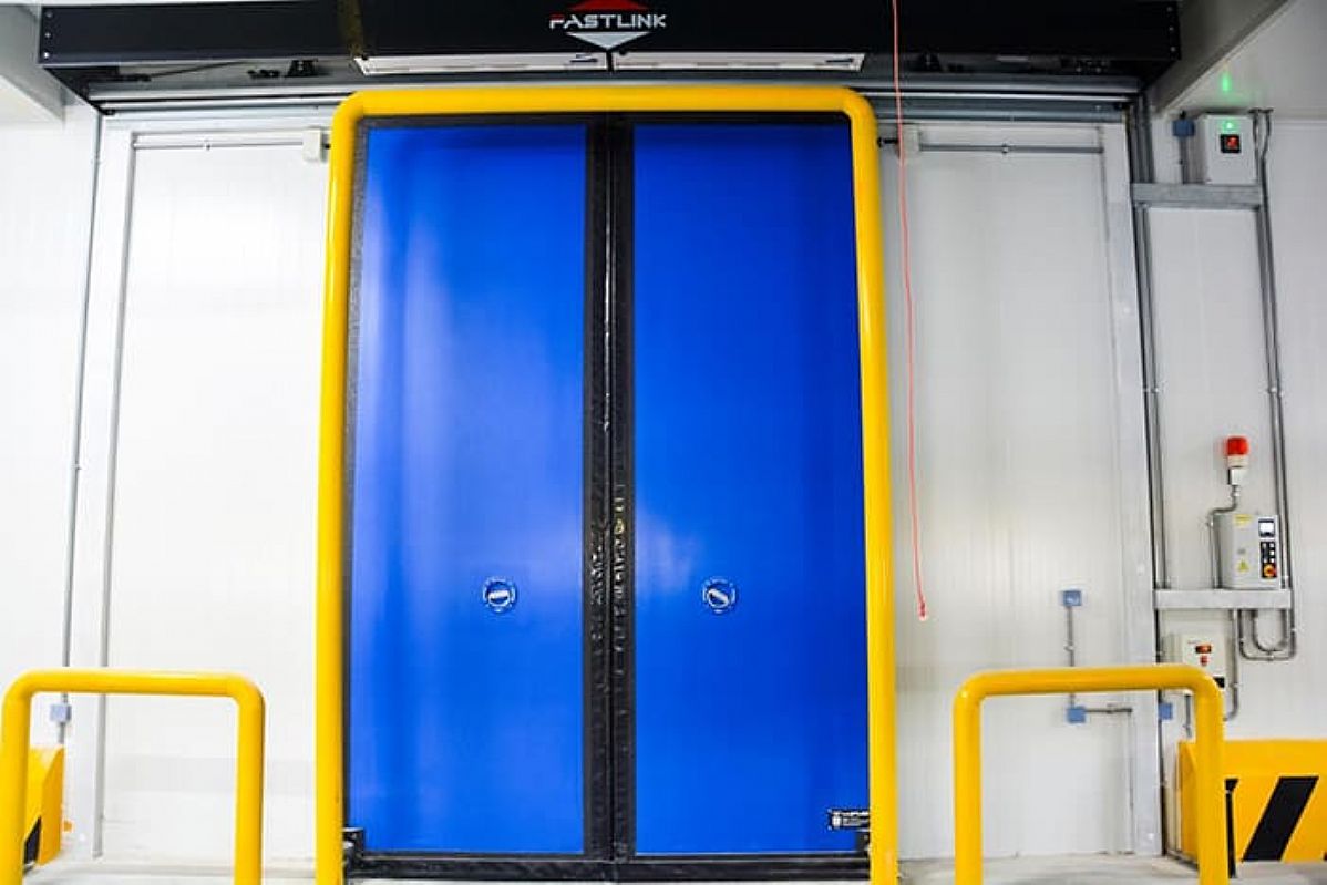 - 冷库高速平移门:与传统的卷帘门或分段门相比,高速门是特制的工业门,运行速度明显更快。为了节省空间,这些门通常在天花板处折叠,或在入口上方缩回成卷状。高速门的设计加快了入口通道的通行速度,并通过减少门的开启时间来降低能量损失。我们建议在冷库的出入口安装高速滑动门。这些门能够减少暴露在环境温度下,降低能量损失并保持内部温度。